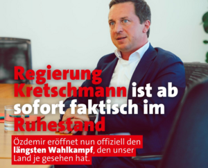 „Özdemir eröffnet nun offiziell den längsten Wahlkampf, den unser Land je gesehen hat. Der Jahrmarkt der Eitelkeiten zwischen Grünen und CDU beginnt – die Regierung Kretschmann ist damit faktisch im Ruhestand. Baden-Württemberg kann sich diesen Stillstand nicht leisten. Dafür gibt es zu viel zu tun: sei es die Sicherung von Arbeitsplätzen oder der Ausbau von Kinderbetreuungsplätzen.
